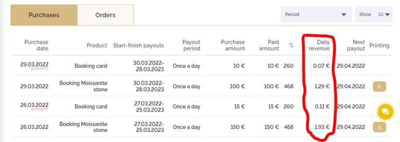 Avec le Bonus de 10% (100 = 10, 150 = 15) et 2% de cashback lors de la promotion : (vous voyez sur cette image les gains journaliers)